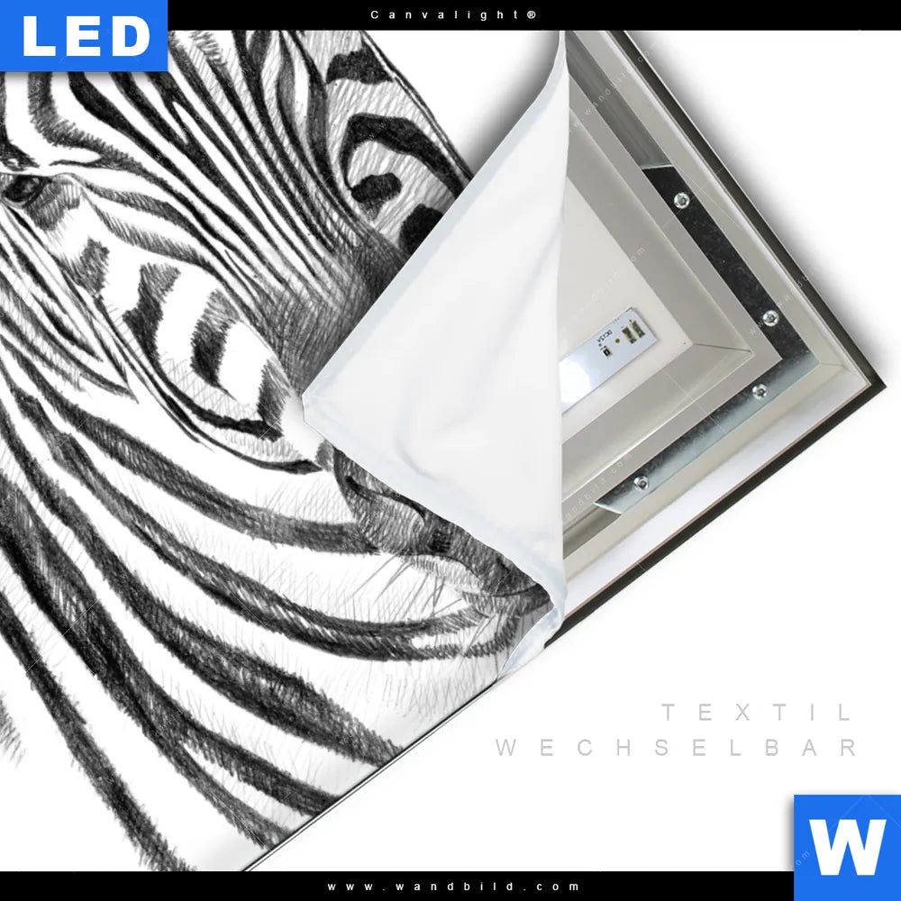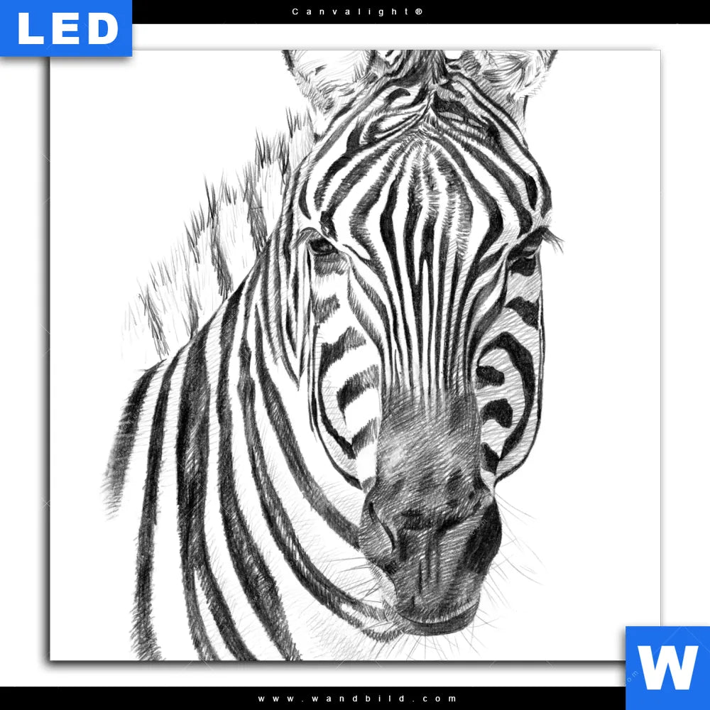Canvalight® TEX Leuchtbild | Bleistiftzeichnung Zebra | Quadrat