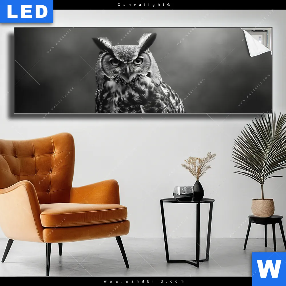 Canvalight® Leuchtbild | Düstere Eleganz der Eule | Panorama