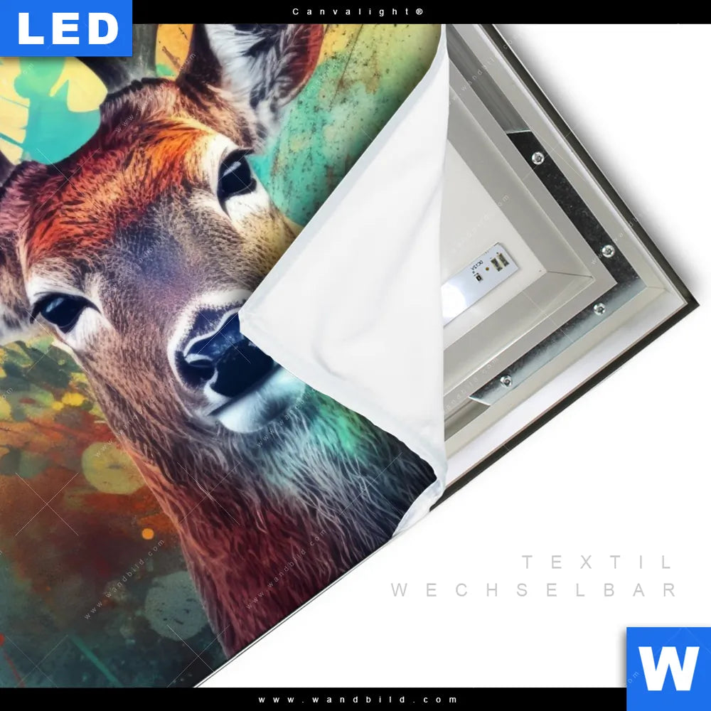 Canvalight® TEX Leuchtbild | Farbenfrohes Hirschporträt | Quadrat