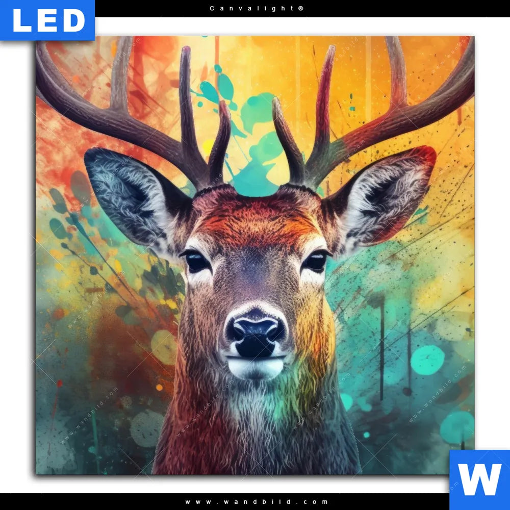 Canvalight® Leuchtbild | Farbenfrohes Hirschporträt | Quadrat
