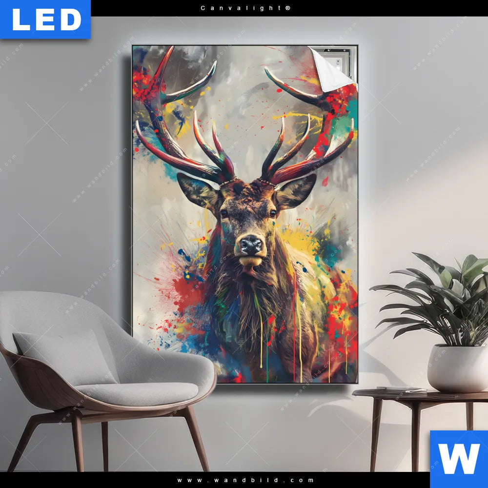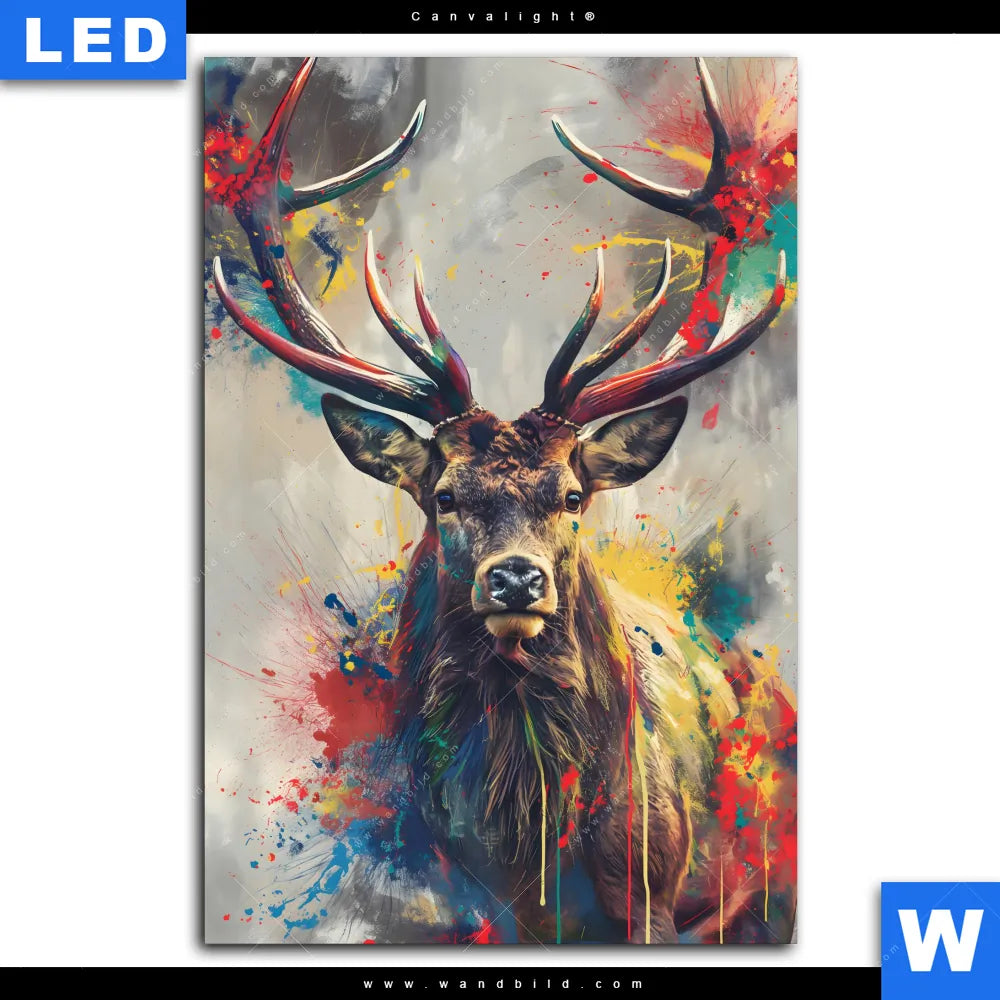 Canvalight® Leuchtbild | Kreativer Hirsch mit Farbspritzern | Hochformat