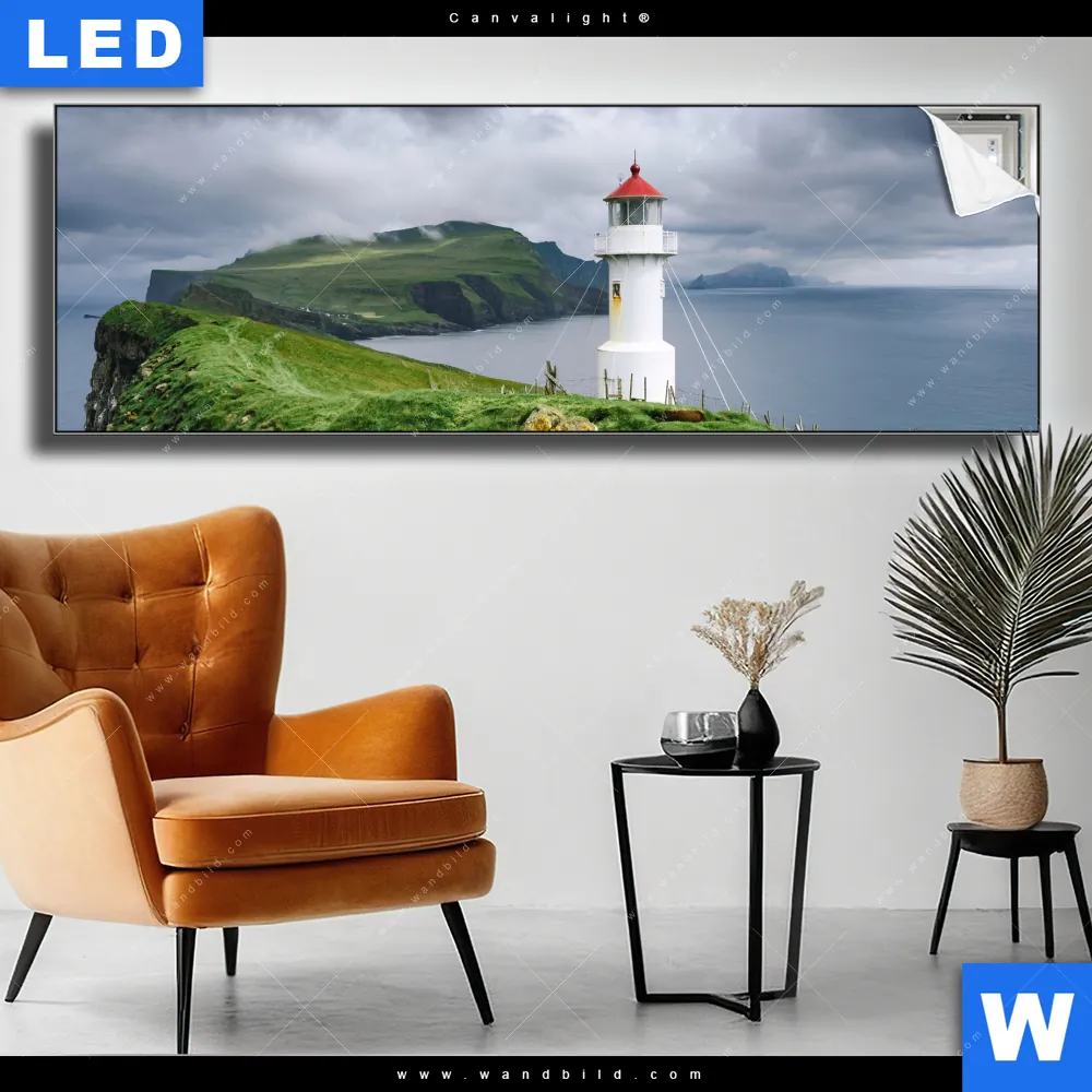 Canvalight® TEX Leuchtbild | Leuchtturm auf Insel | Panorama