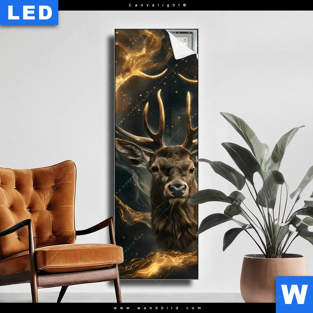 Canvalight® TEX Leuchtbild | Magischer Hirsch im Sternenlicht | Schmal