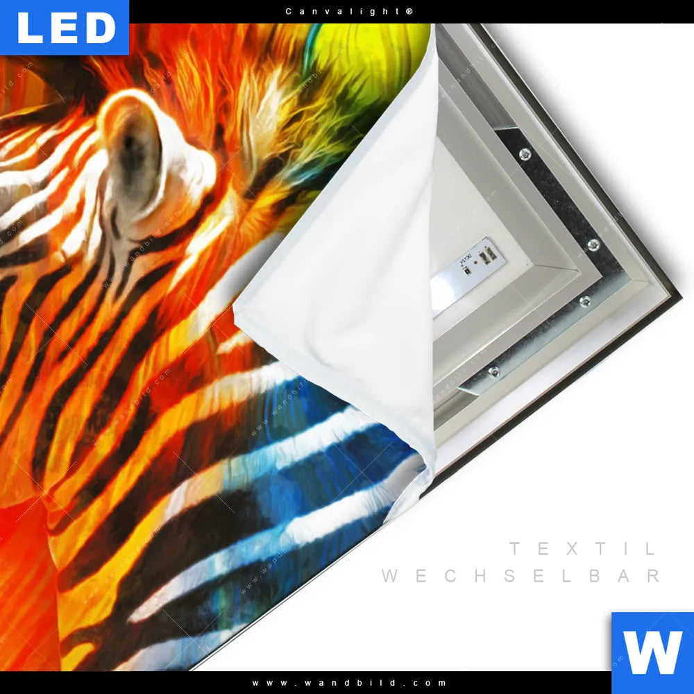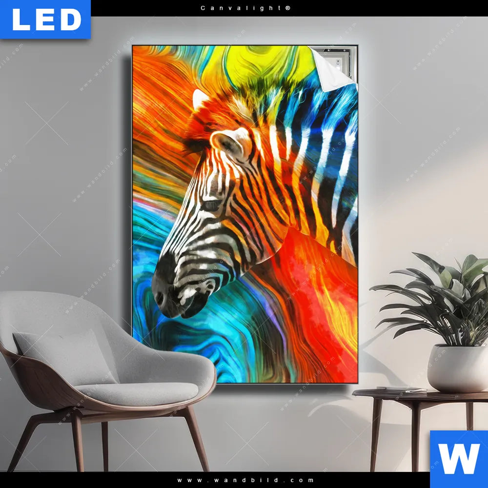 Canvalight® TEX Leuchtbild | Modernes Buntes Zebra | Hochformat