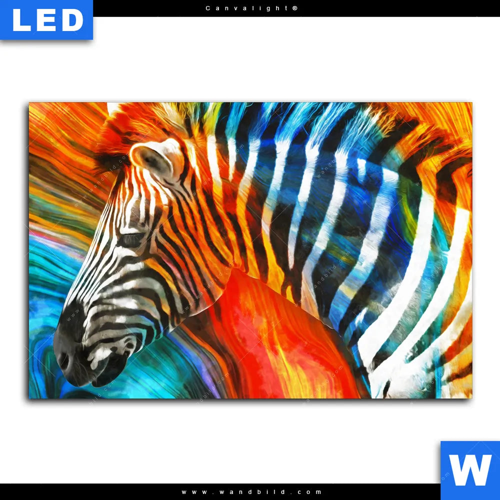 Canvalight® Leuchtbild | Modernes Buntes Zebra | Querformat