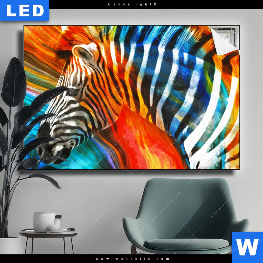 Canvalight® TEX Leuchtbild | Modernes Buntes Zebra | Querformat