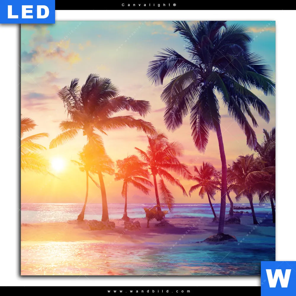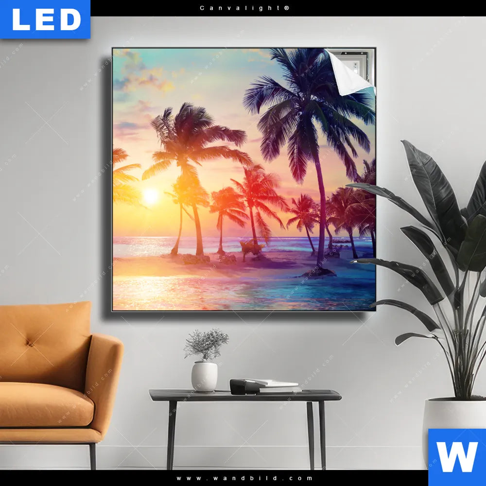 Canvalight® Leuchtbild | Palmen bei Sonnenuntergang | Quadrat