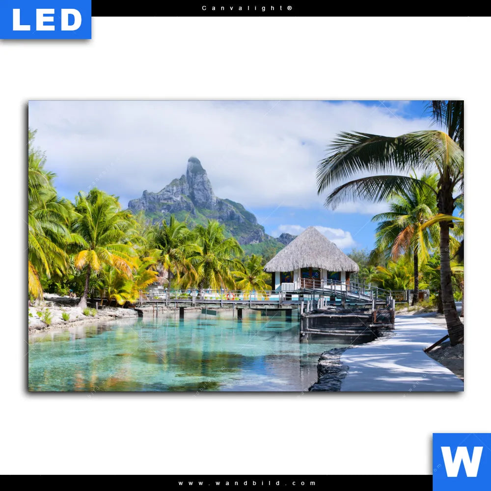 Canvalight® Leuchtbild | Palmen & Berg auf Insel | Querformat