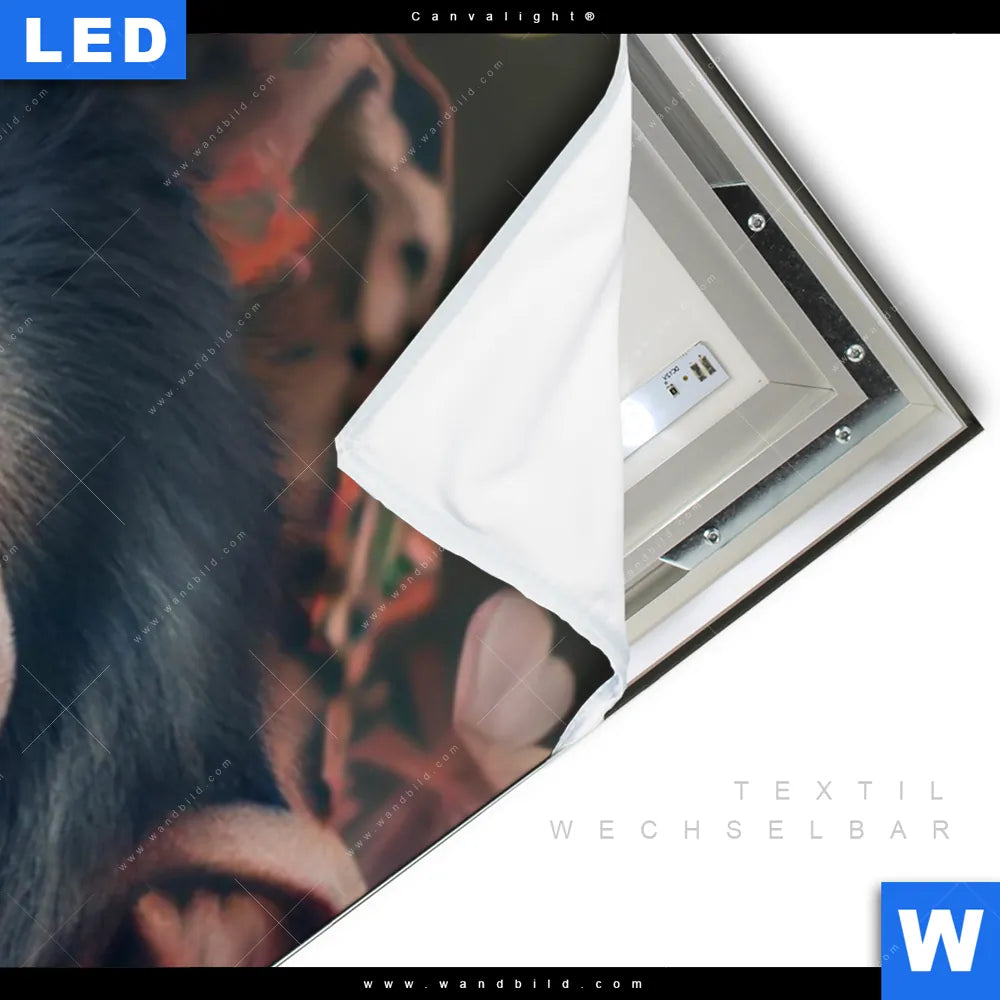 LED-Textilrahmen-Bild mit austauschbarem Tierwelt Textil-Druck (Wechselbild)