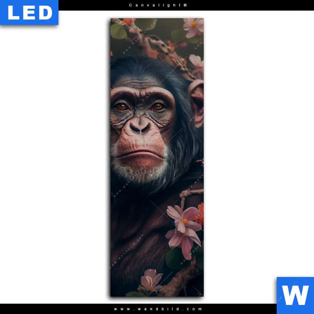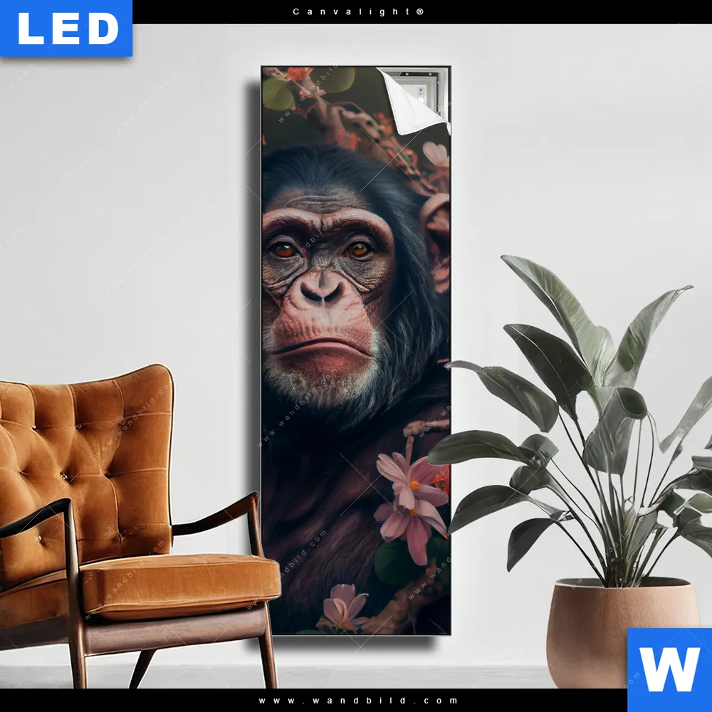 Canvalight® Leuchtbild | Schimpanse zwischen Blumen | Schmal