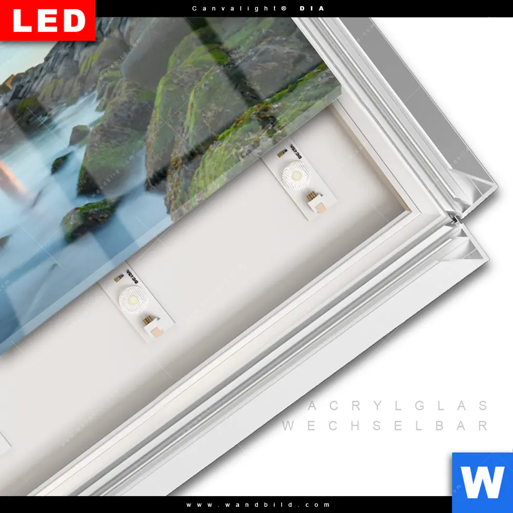 LED-Glasbild mit austauschbarem Acrylglas-Druck (Wechselbild)
