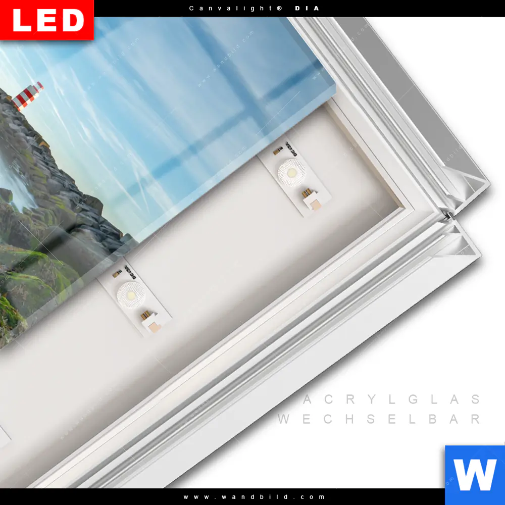 LED-Glasbild mit austauschbarem Acrylglas-Druck (Wechselbild)
