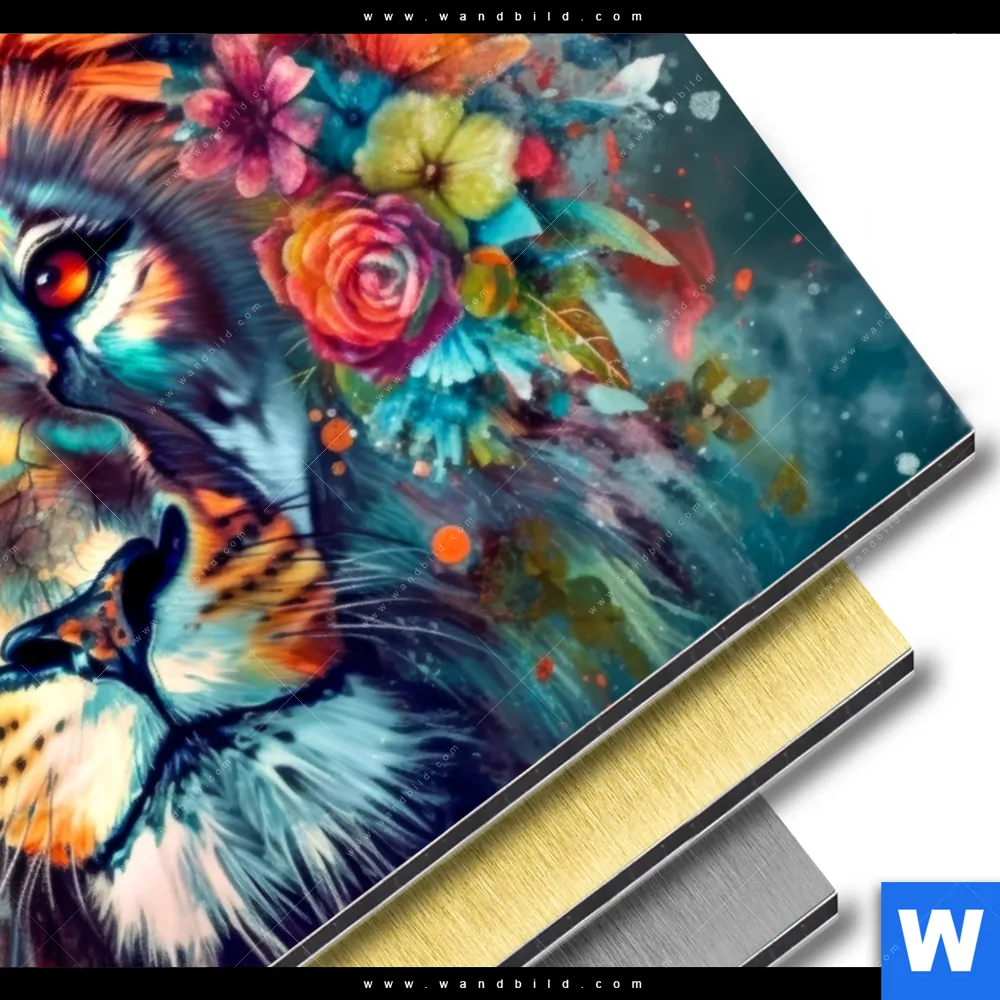 Alu-Dibond Bild | Floraler Löwe | Querformat