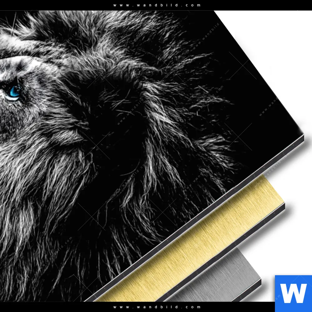 Alu-Dibond Bild | Löwe mit blauen Augen | Hochformat