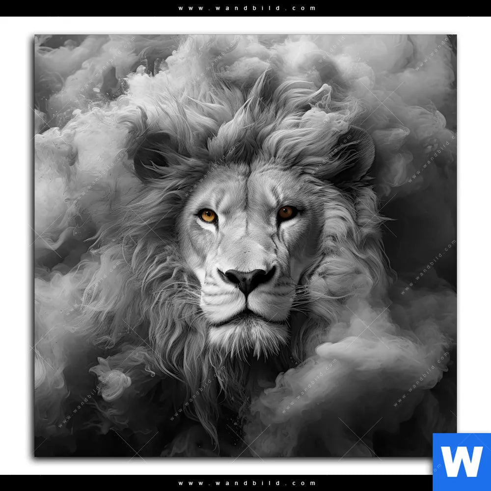 Alu-Dibond Bild | Löwengesicht in Rauch | Quadrat