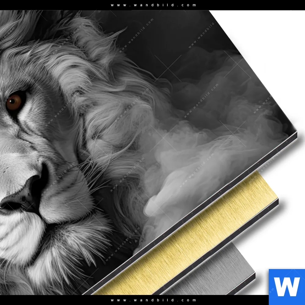 Alu-Dibond Bild | Löwengesicht in Rauch | Querformat