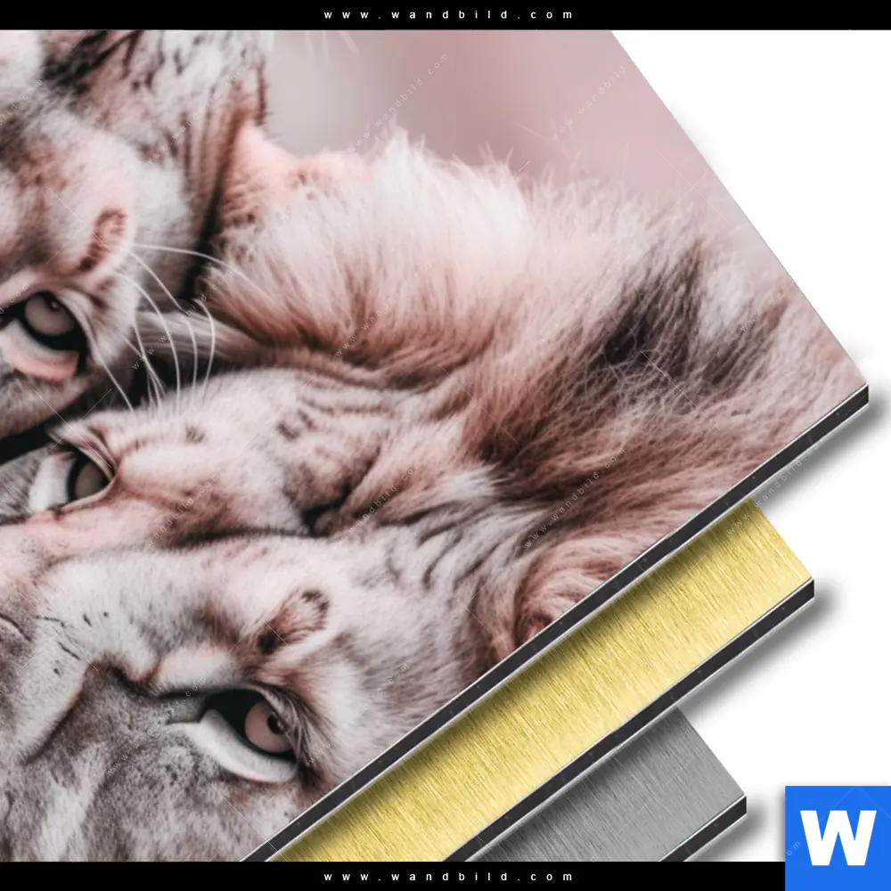 Aluminiumbild gebürstet | Löwen - Harmonie in Pastell | Hochformat