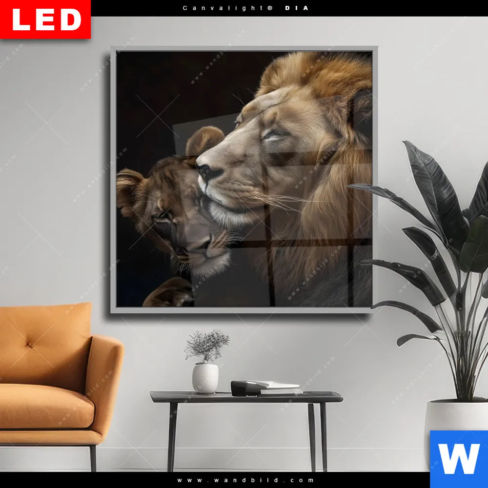 Wechselmotiv Acrylglas Canvalight® DIA | Löwen - Stärke und Zärtlichkeit | Quadrat