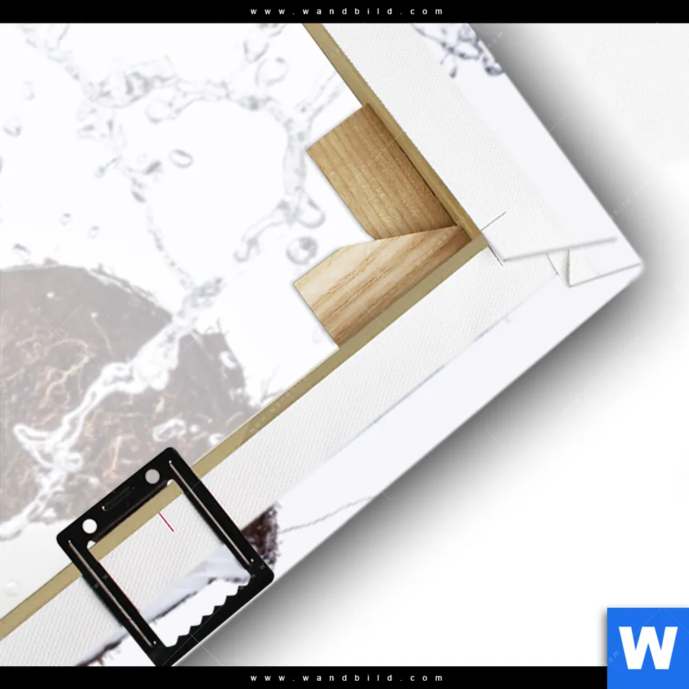 Leinwandbild | Kokosnüsse mit Wasserspritzer | Schmal