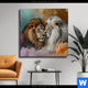 Leinwandbild | Sanfte Löwenmomente in buntem Nebel | Querformat