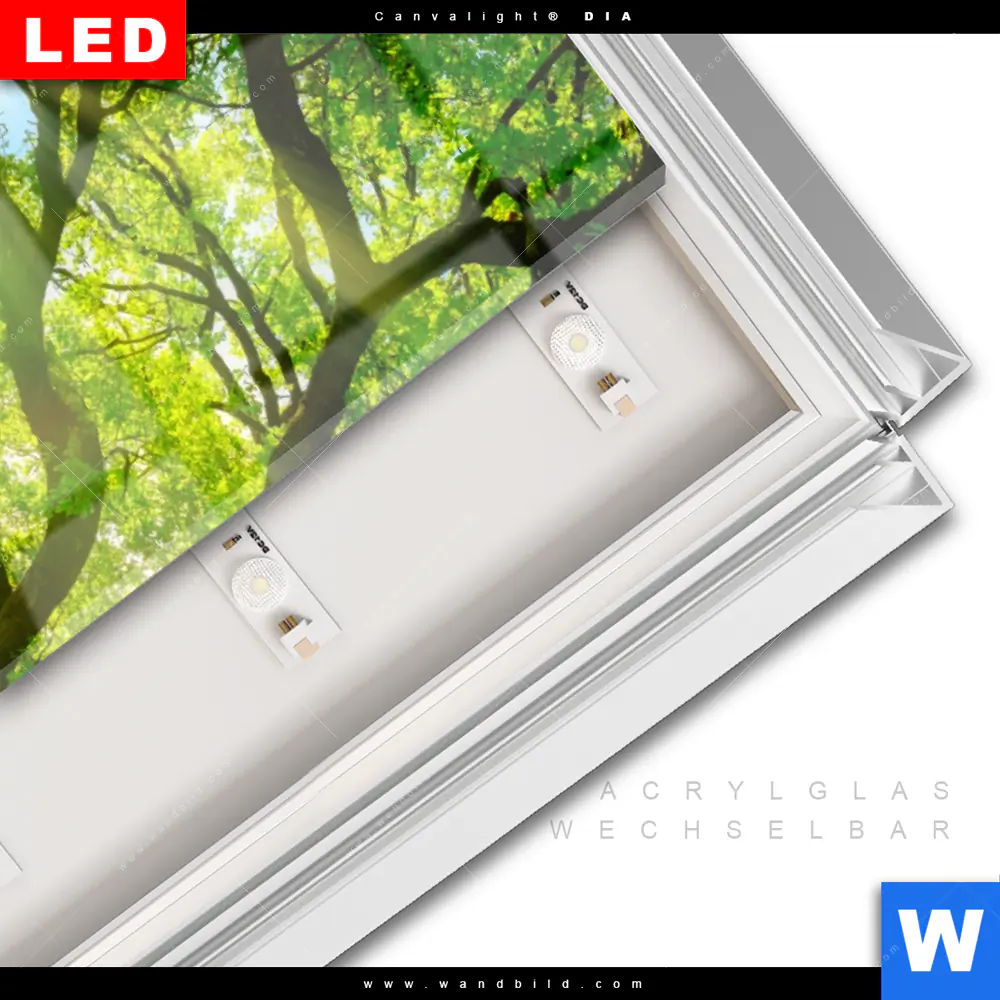 LED-Glasbild mit austauschbarem Acrylglas-Druck (Wechselbild)
