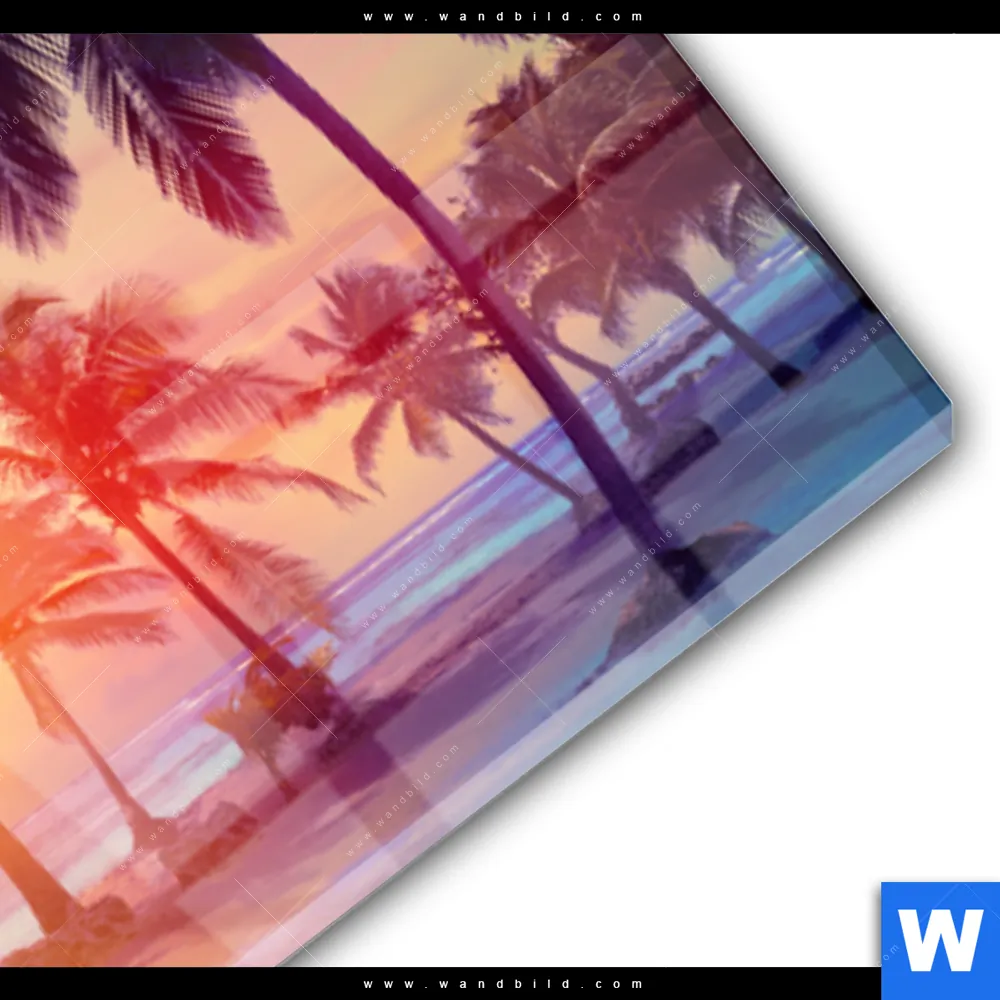 Acrylglasbild | Palmen bei Sonnenuntergang | Panorama