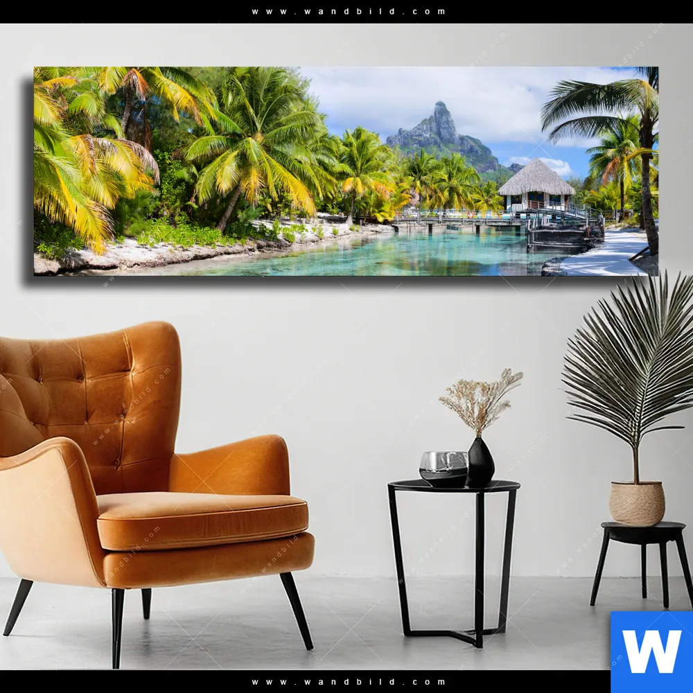 Leinwandbild | Palmen & Berg auf Insel | Panorama