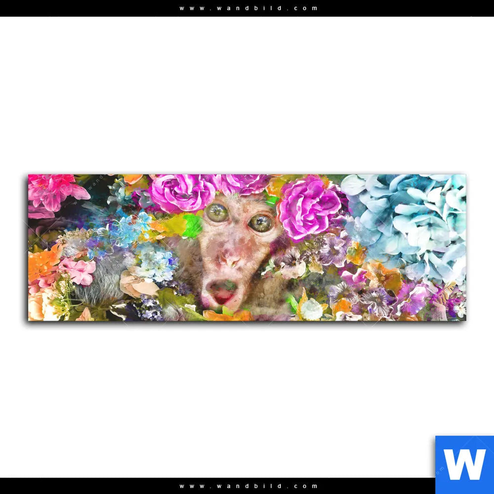 Acrylglasbild | Äffchen & Blumen | Panorama