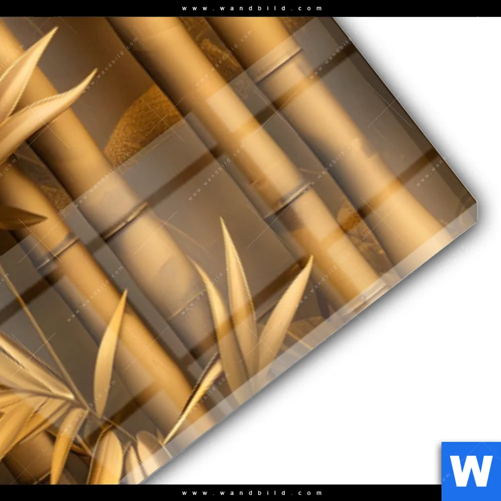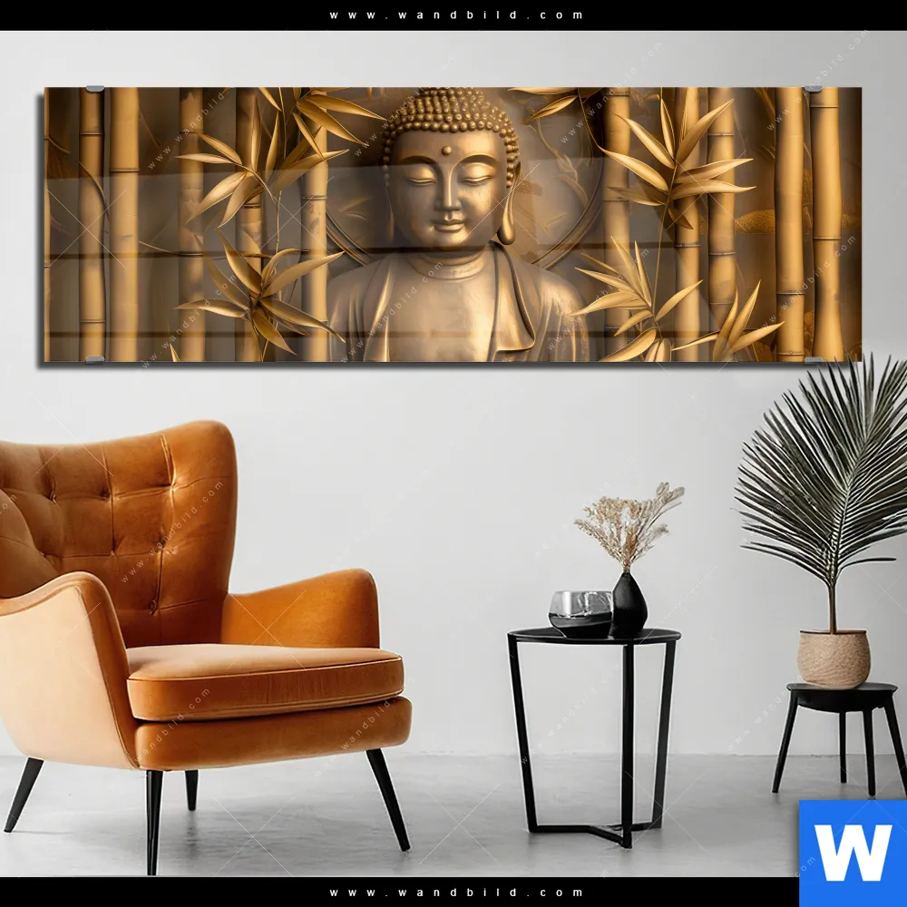 Acrylglasbild | Goldener Buddha im Bambuswald | Panorama