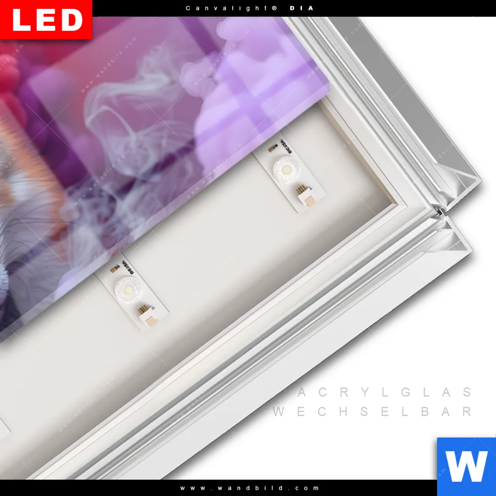 LED | Wechselrahmen-System | Acrylglas-Wechselbilder | DIA-Klapprahmen-Funktion
