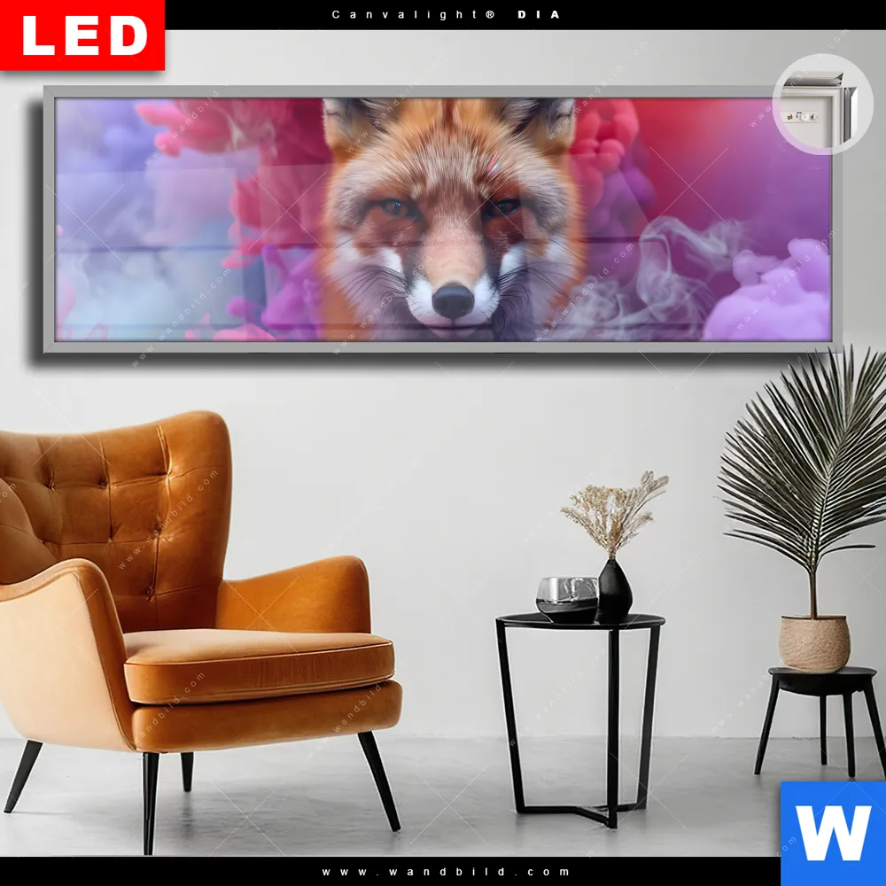 Canvalight® DIA Leuchtbild | Fuchs in Farbnebel | Panorama