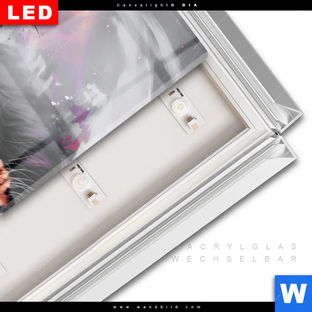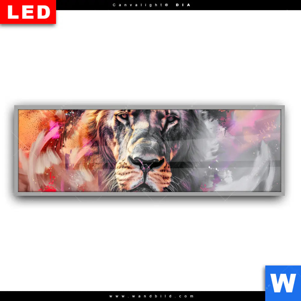 Canvalight® DIA Leuchtbild | Löwe im Farbensturm | Panorama