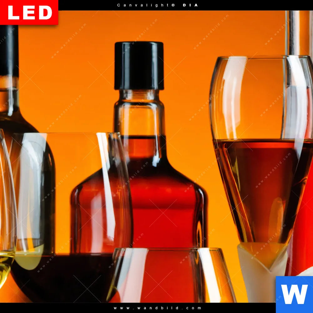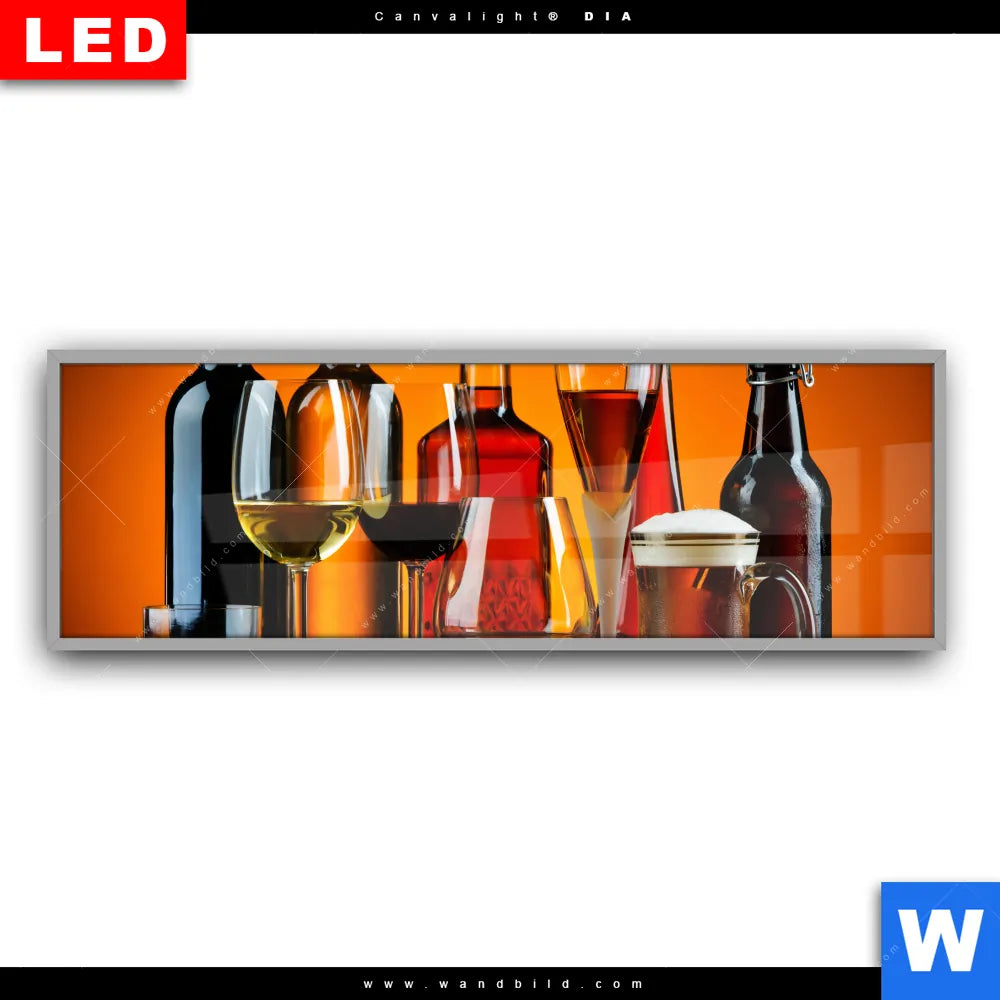 Leuchtbild Acrylglas Canvalight® DIA | Stillleben Flaschen Gläser | Panorama