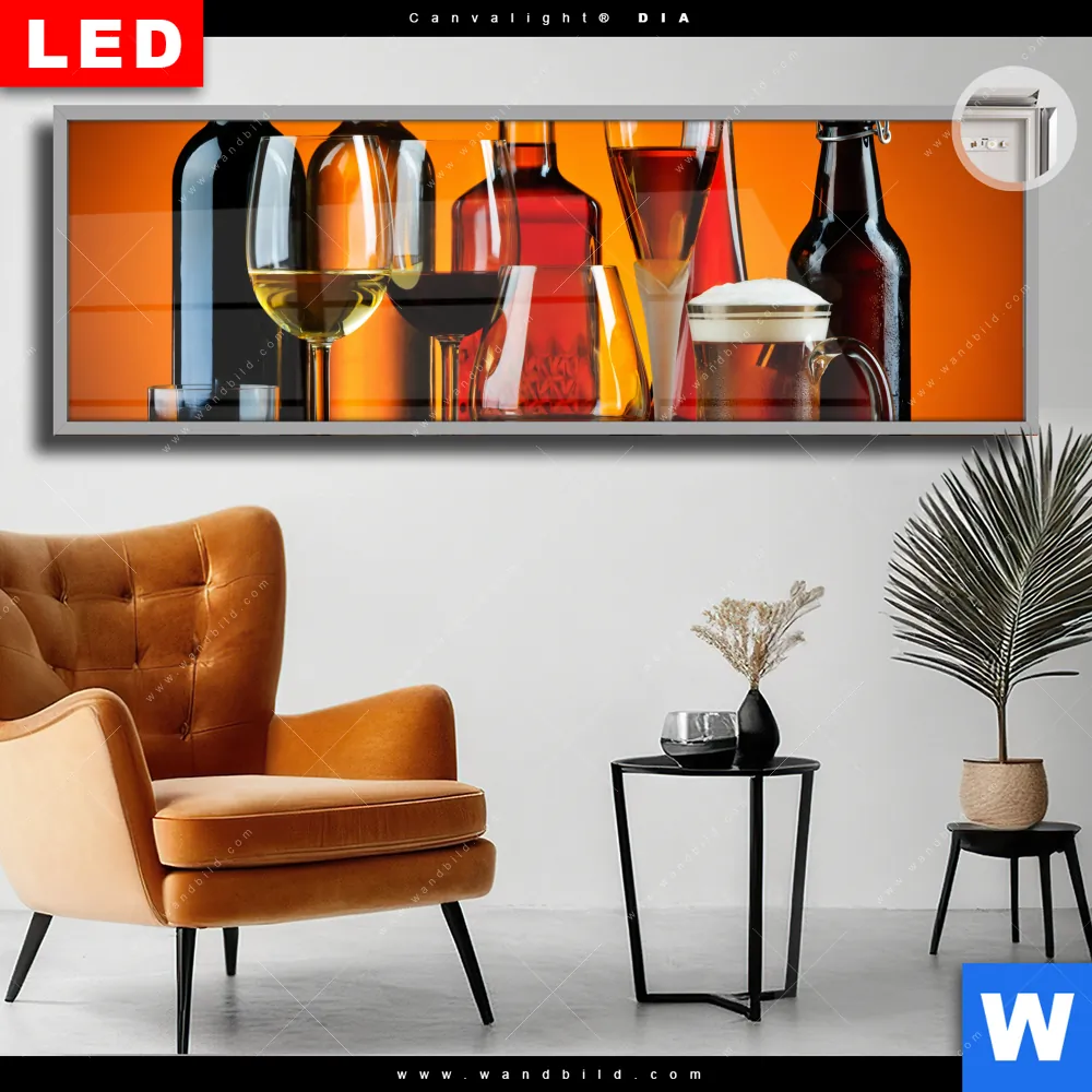 Canvalight® DIA Leuchtbild | Stillleben Flaschen Gläser | Panorama