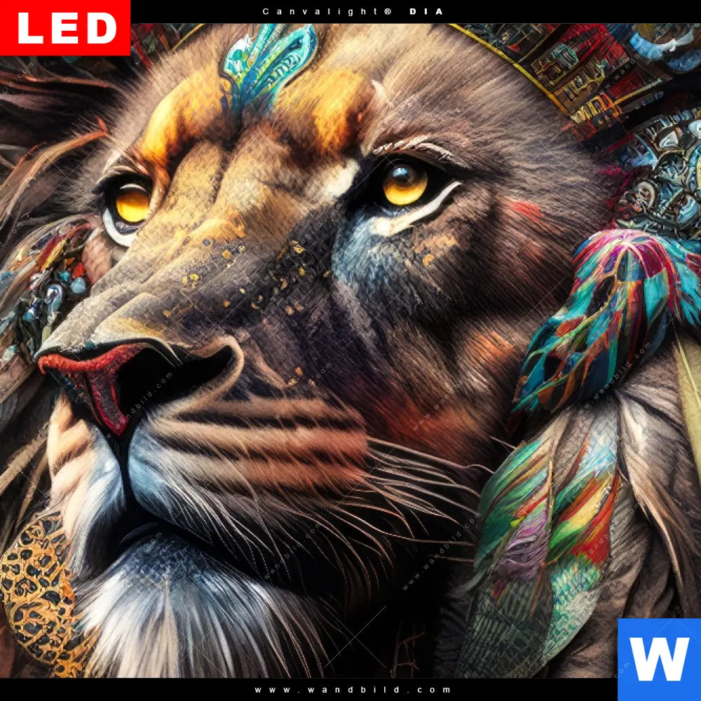 Wechselmotiv Acrylglas Canvalight® DIA | Löwenkopf mit bunten Federn | Panorama