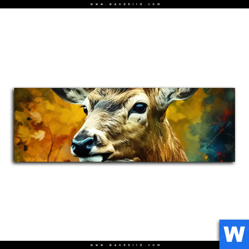 Leinwandbild | Rothirsch im Herbstwald | Panorama