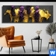Leinwandbild | Weiße Löwin mit Goldblüten | Panorama