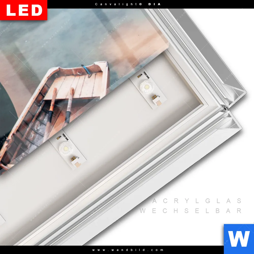 LED-Glasbild mit austauschbarem Acrylglas-Druck (Wechselbild)