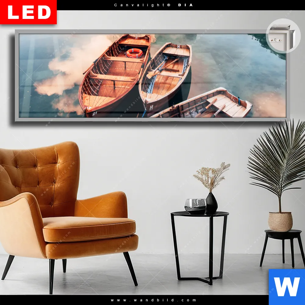 Canvalight® DIA Leuchtbild | Boote im Bergsee | Panorama