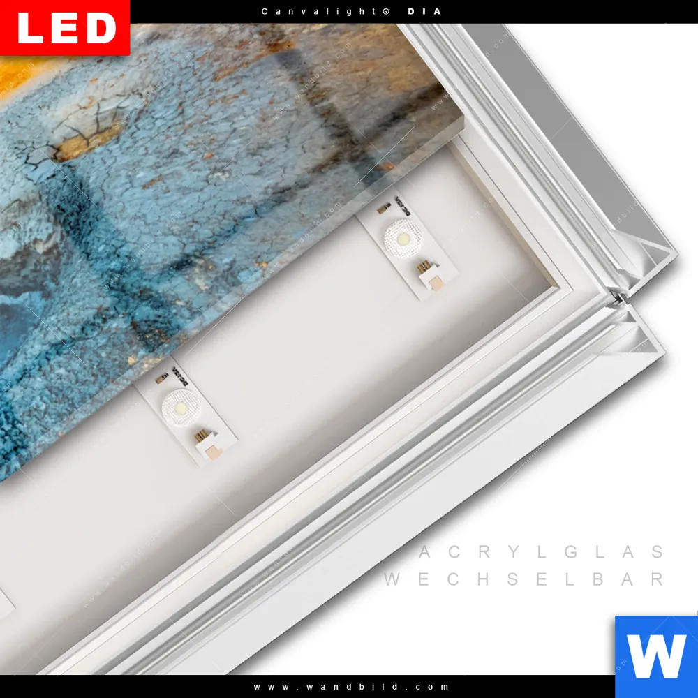 LED-Glasbild mit austauschbarem Acrylglas-Druck (Wechselbild)
