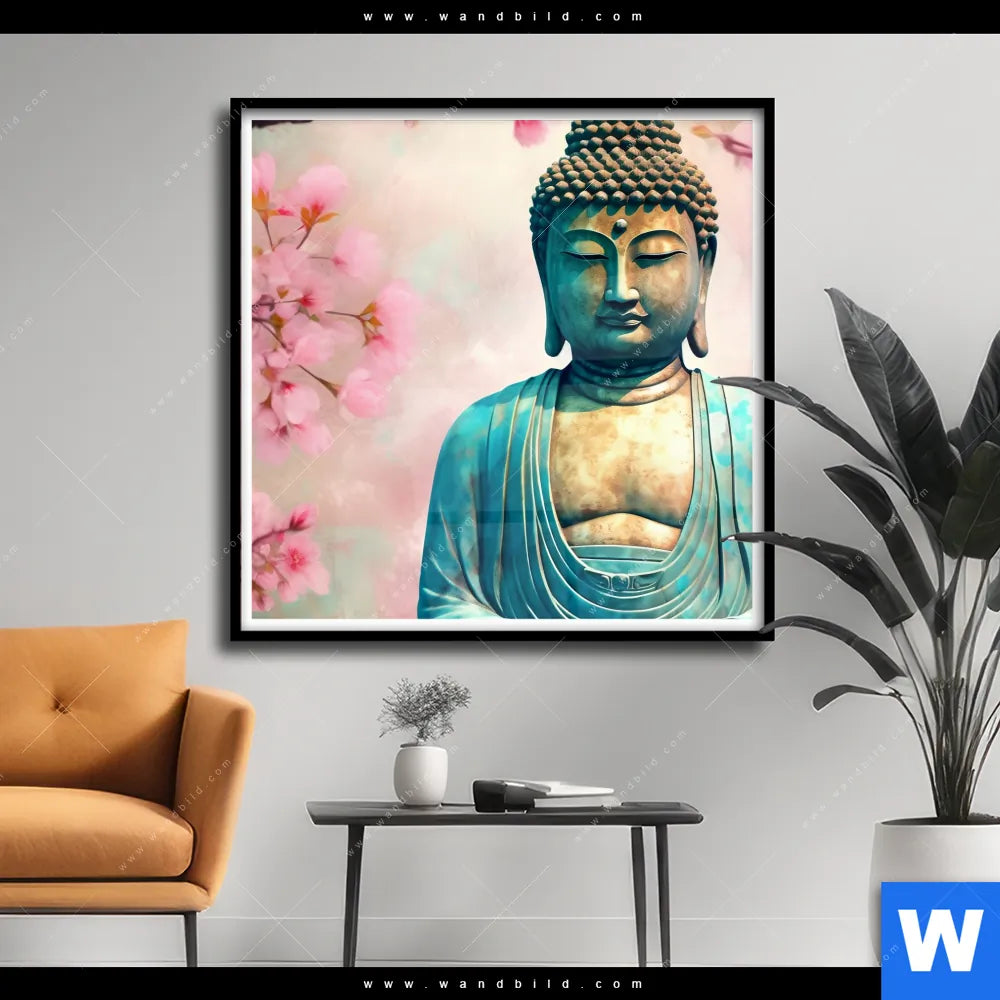 Poster | Buddha Statue mit Kirschblüten | Quadrat