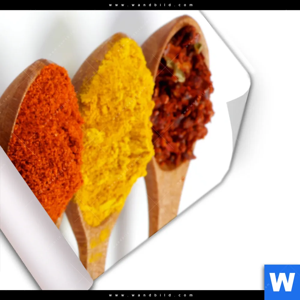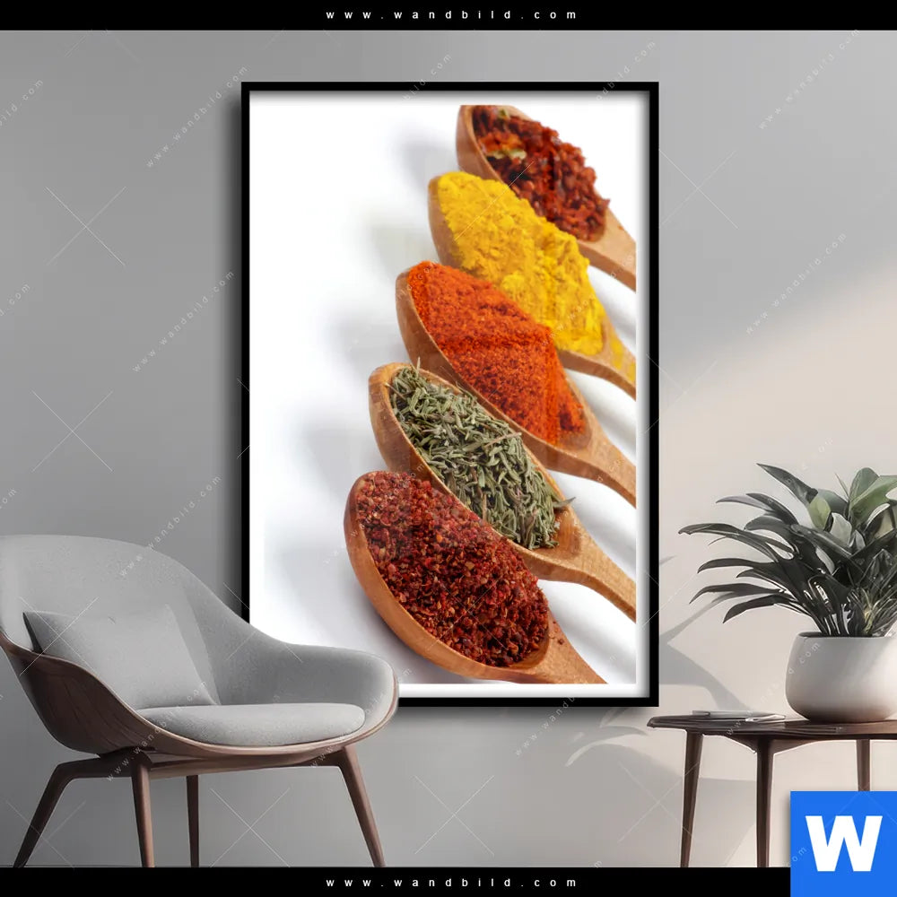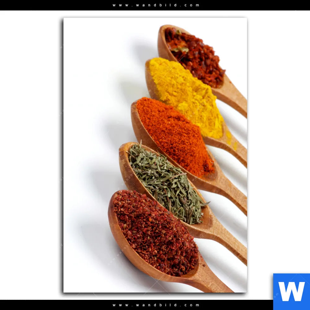 Poster | Farbige Gewürze auf Holzlöffel | Hochformat