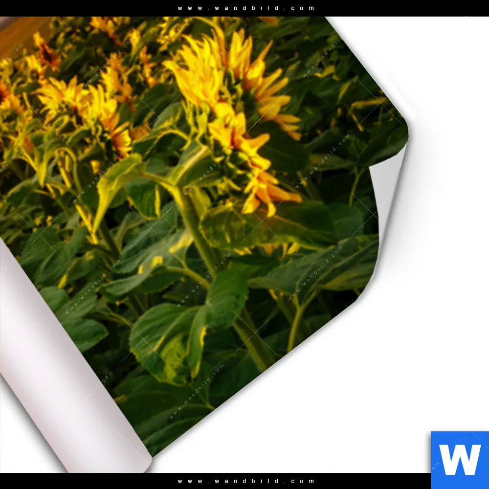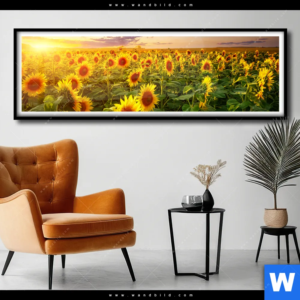 Poster | Leuchtend gelbe Sonnenblumen am Abend | Panorama