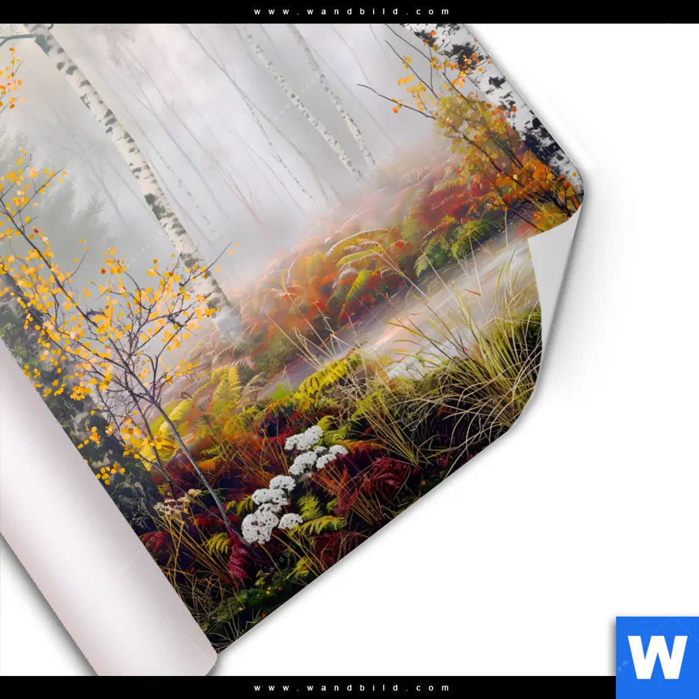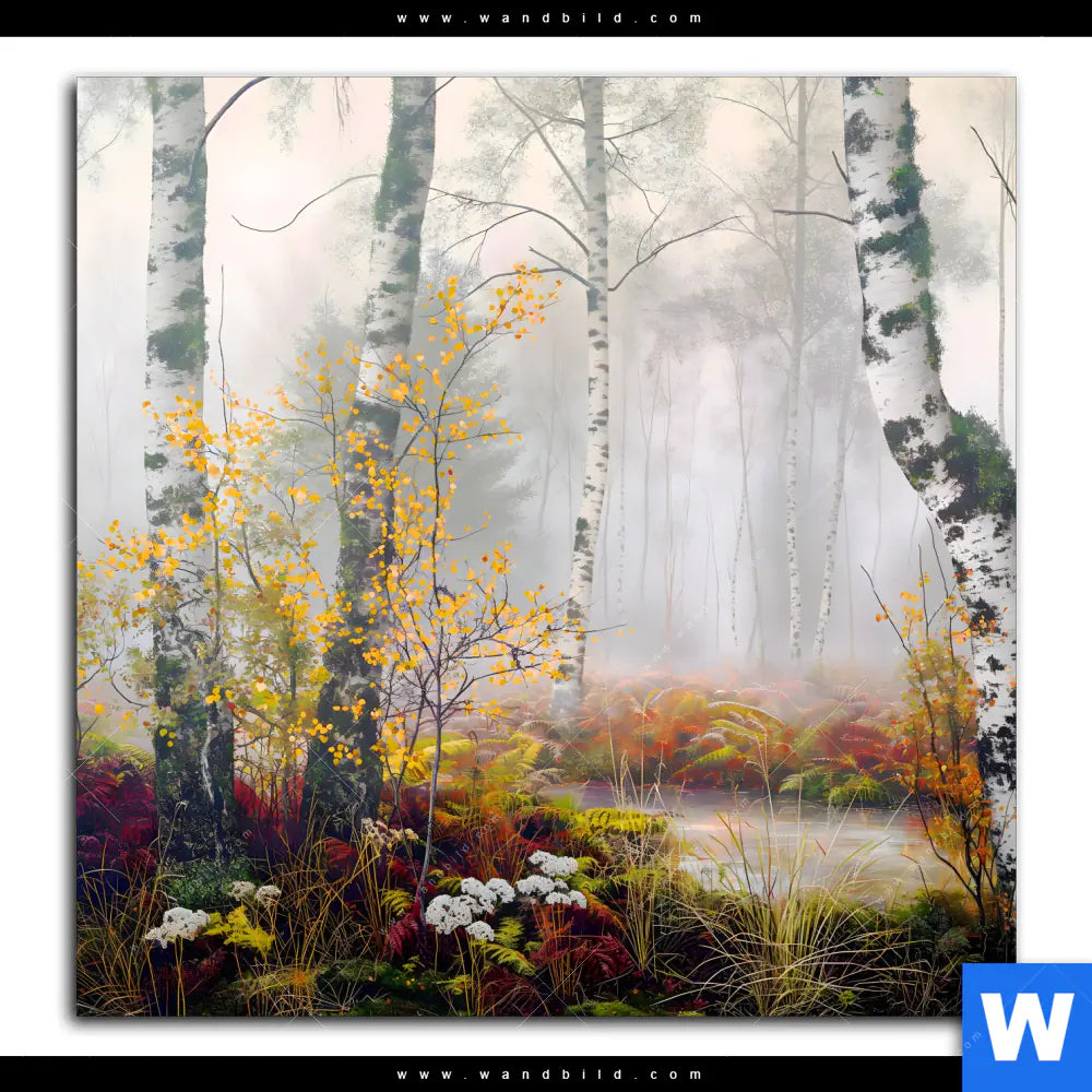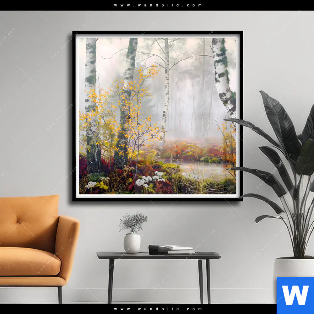 Poster | Naturidylle - Birken im Nebel | Quadrat