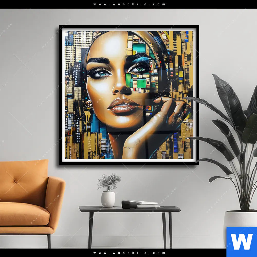 Poster | Zoe - Mosaikgesicht im Großstadtlicht | Quadrat