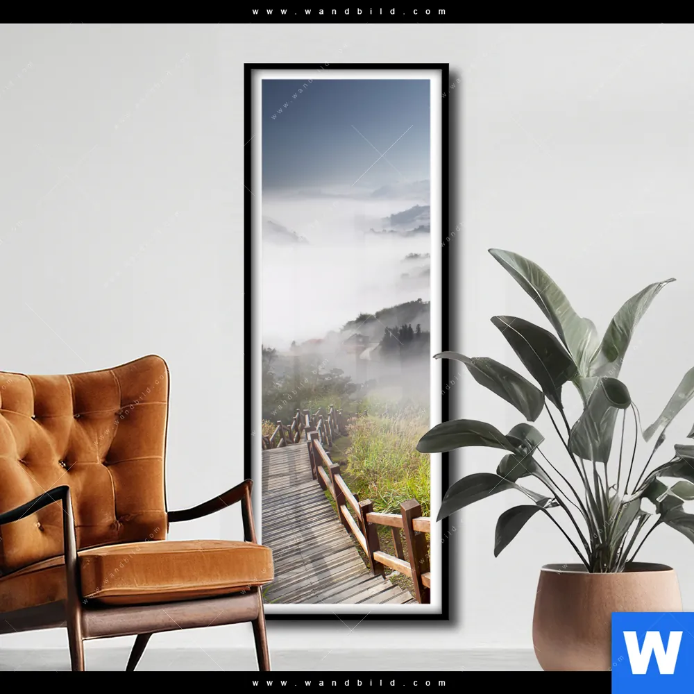 Poster | Holztreppe auf Berg mit Wolken | Schmal