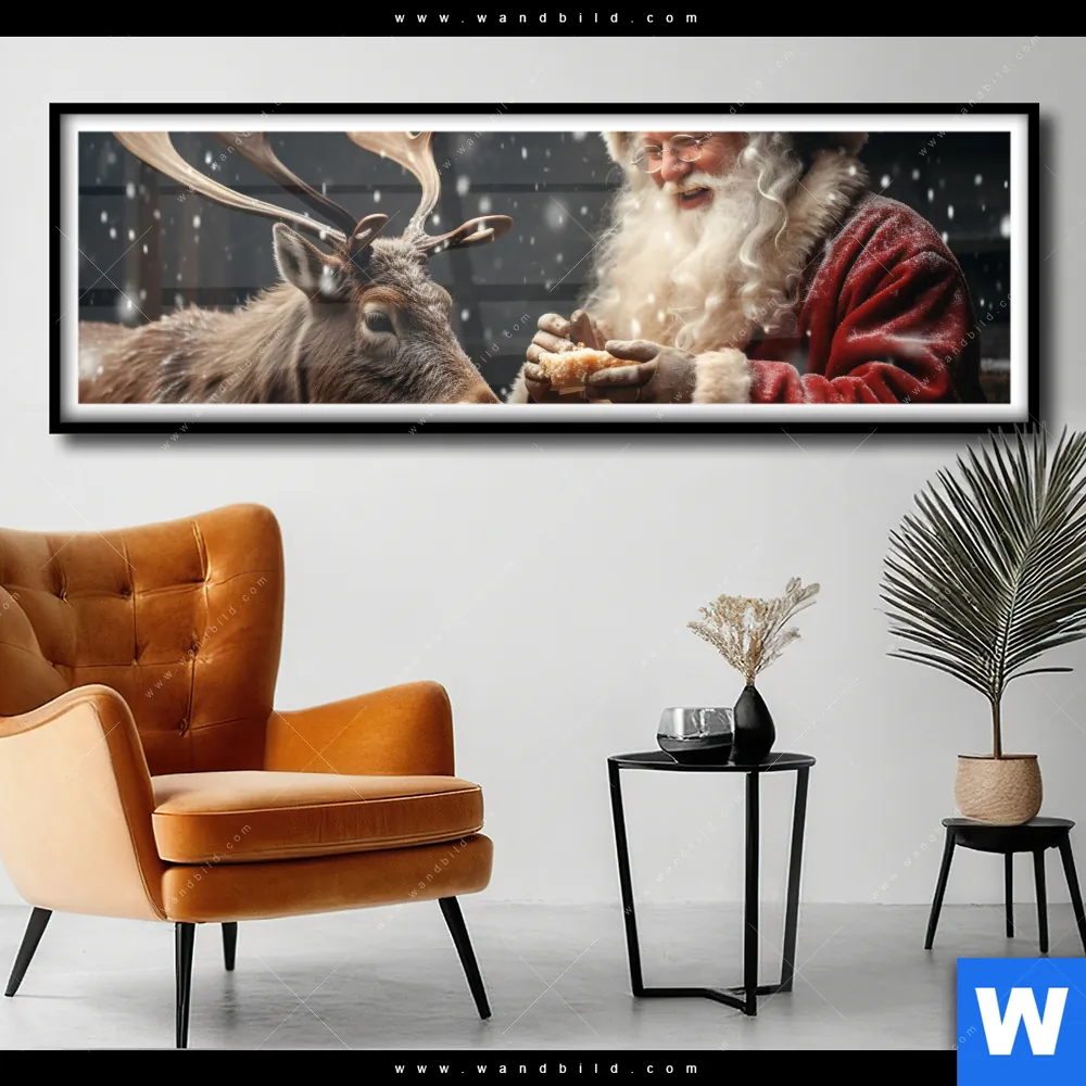Poster | Weihnachtsmann füttert Rentier | Panorama