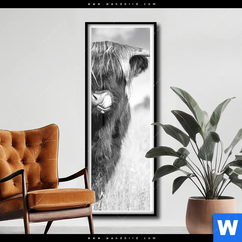Poster | Hochlandkuh auf einer Wiese | Schmal