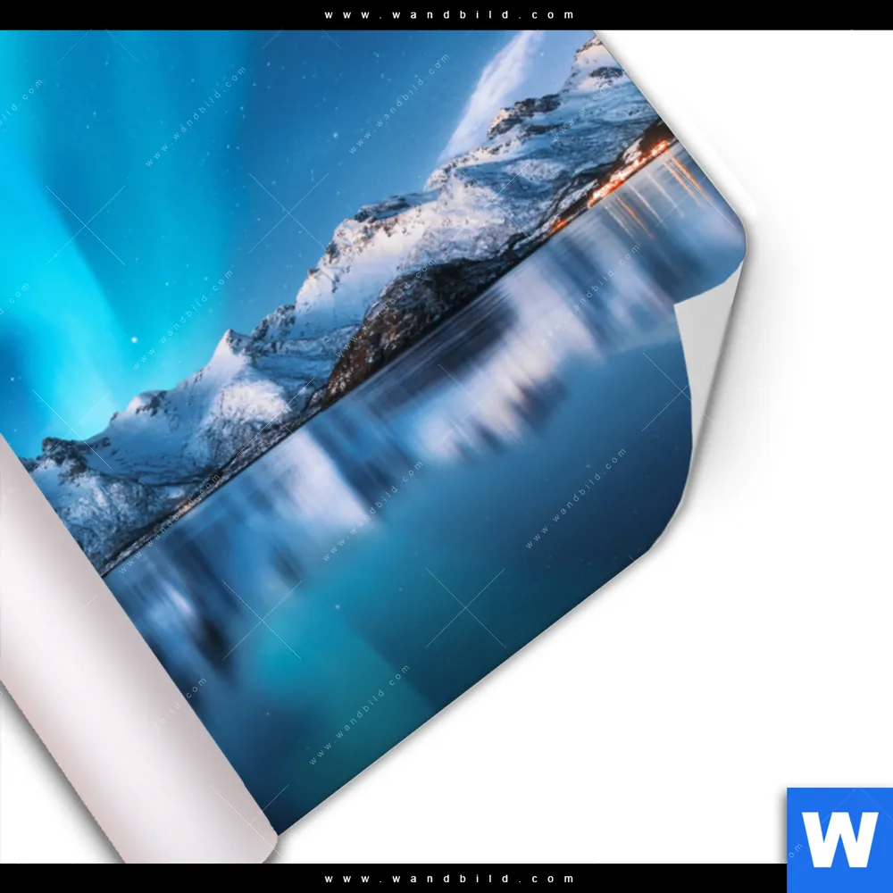 Poster | Nordlichter und schneebedeckte Berge | Querformat