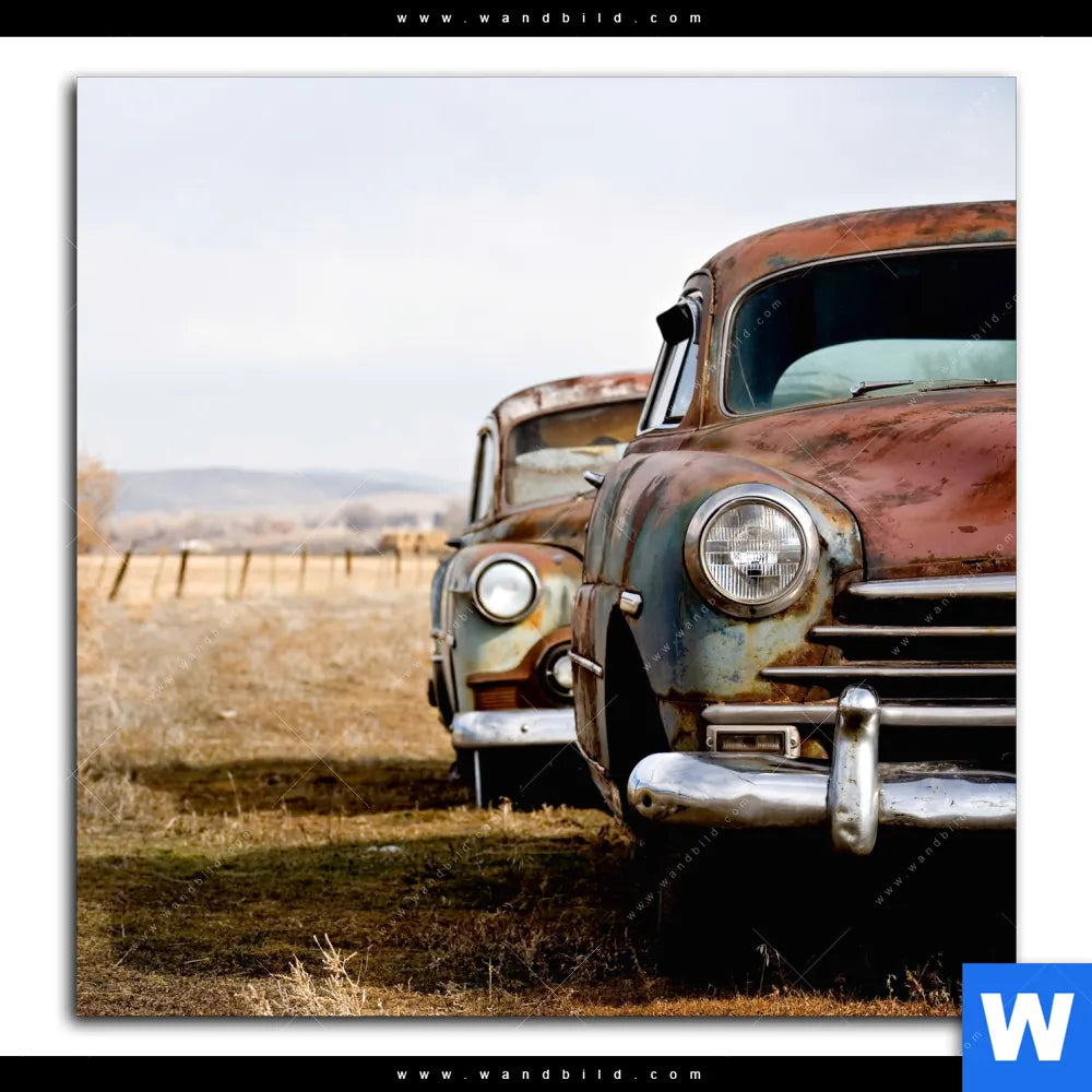 Aluminiumbild gebürstet | Alte rostige Autos | Quadrat